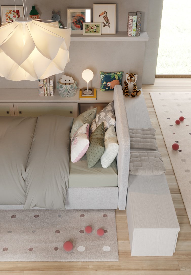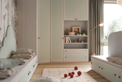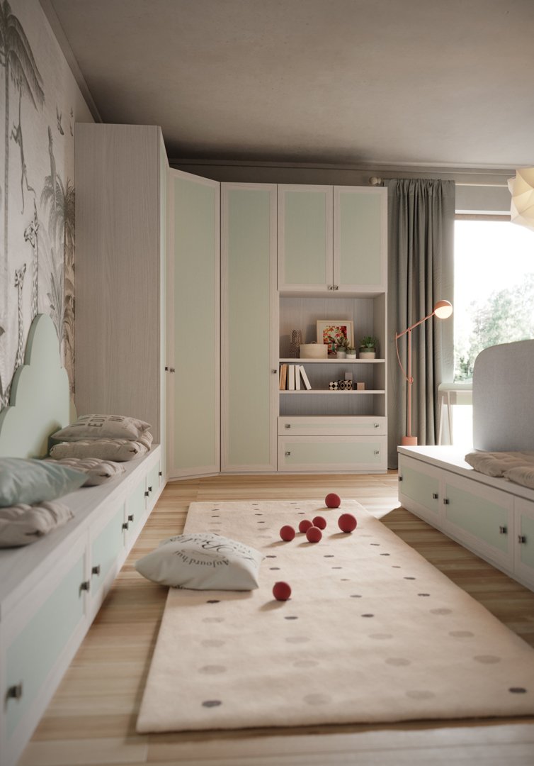 CM | 340 Playing imaginative games with pastel shades in a kids’ bedroom with a wardrobe with hinged doors and walk-in corner section. CM | 341 PREVIOUS CM | 339 NEXT