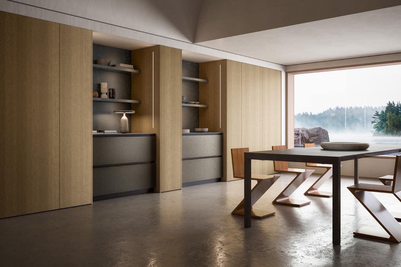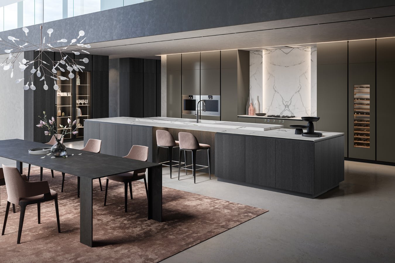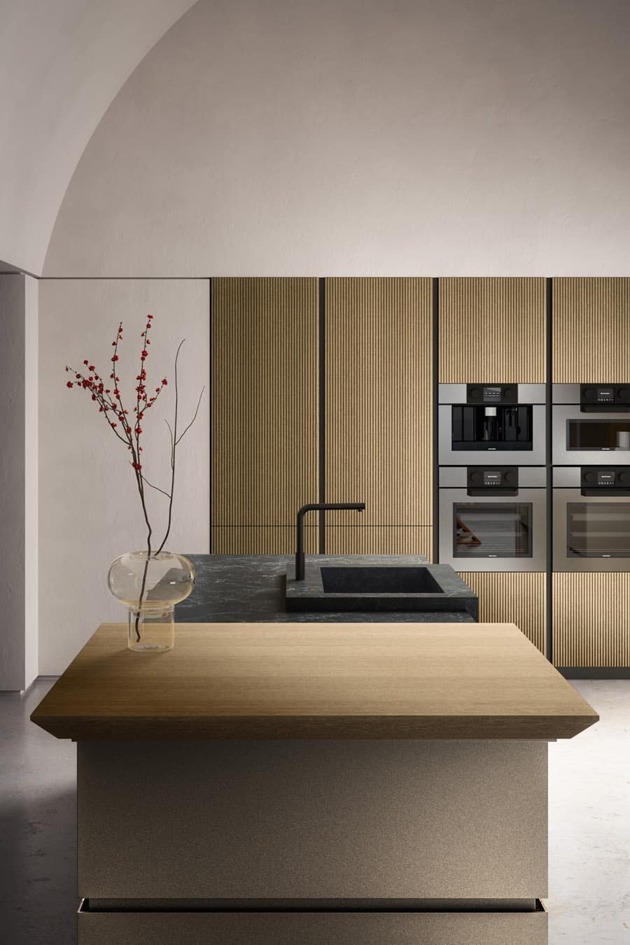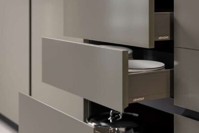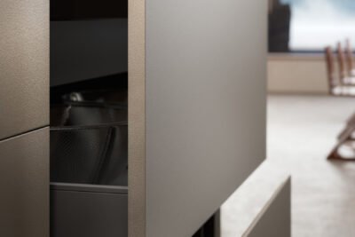 Diamond is a cabinet door with integrated handle; essential, unique and timeless. Manufactured with the most up to date numerical control machines, this door gives the kitchen a refined, minimal look.